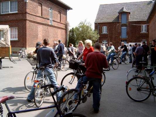 Samstag Mittag: Die Feuerwehrleute versammeln sich zum Ausflug.
