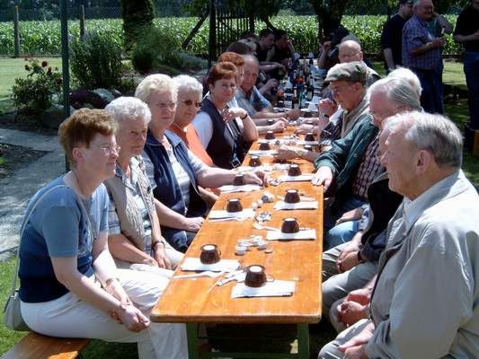 Die Kaffeepause wird auf dem Hof von Norbert und Sabine Grae in Böckum eingelegt. Es ist schon gut, wenn man überall seine Leute hat.