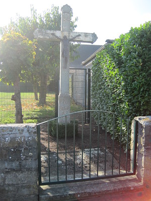Das Natursteinkreuz trägt auf der Vorderseite die Inschrift: