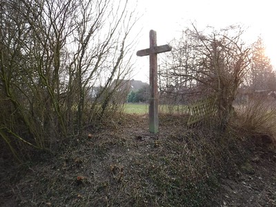 Das schlichte Steinkreuz mit abgerundeten Schaftenden steht am westlichen Rand des Triftweges, auf dem bis Mitte des 19. Jh. die Anröchter Viehherden zu Hude und Mast in die Feld- und Waldmark getrieben wurden.