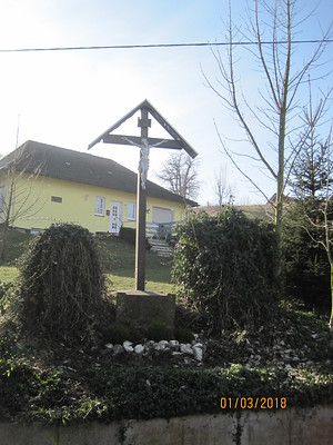 Ergänzung des Textes: Wie im Vorhinein erwähnt, war statt des Steinkreuzes ein Holzkreuz versetzt worden. Da das Steinkreuz sehr schön und aufwendig gearbeitet war und insbesondere einen historischen Wert hat, habe ich alles daran gesetzt, dass dieses schöne Steinkreuz wiederum an seinen alten Platz kam. Unter erheblichen Einsatz meiner Eigenleistung ist es dann gelungen, das schöne Steinkreuz restaurieren zu lassen und wieder aufzustellen. Einer meiner Grundgedanken war auch, daß das Holzkreuz in einigen Jahren morsch sein wird und dann möglicherweise kein Ersatz folgt, das ist beim Steinkreuz anders.Ein neuer Corpus aus Beton wurde auch angebracht, den Anstrich habe ich durchgeführt.