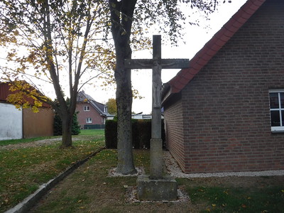 Sie stehen hier vor einem der typischen Wegekreuze, dazu noch mit einem Corpus geschmückt, das Kreuz steht nicht unter Denkmalschutz.