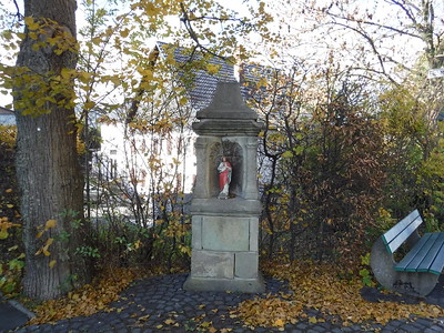 Nahe des Bildstocks lädt an der rechten Seite eine Bank zur Verschnaufpause ein.