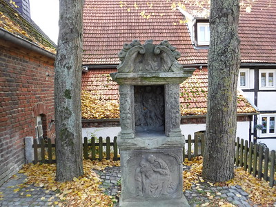 Wenn Sie vor diesem Bildstock stehen und bereits einige andere solcher religionsgeschichtlichen Denkmale in den übrigen Ortschaften der Gemeinde Anröchte betrachtet haben, dann wird Ihnen sicher auffallen, dass sich dieses volksfromme Wegemonument - wie noch einige andere in Effeln- auffallend deutlich von den bisher gesehenen unterscheidet: Sei es hinsichtlich des Gesteins und auch wegen ihrer äußeren Erscheinungsformen in Struktur, Stil und Ornamentik.
