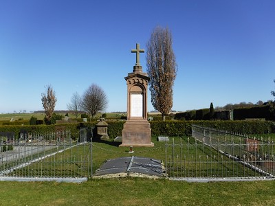 Auf diesem Denkmal war bis etwa im Jahr 2014 ein Steinkreuz aufgestellt. Infolge baulicher Schäden mußte dieses Steinkreuz abgenommen werden, es steht nun unten in der Gruft.