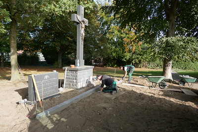 In diesen Tagen begannen die Arbeiten zur Neugestaltung der Priestergräberanlage auf dem Friedhof in Mellrich. Im Jahre 1977 wurden das alte Friedhofskreuz und die Grabsteine auf Initiative von Pfarrer Gerhard Schulte - Ontrop entfernt. Seit dieser Zeit stehen das neue Friedhofskreuz und die Gedenktafeln, auf denen die Namen der Priester eingemeißelt sind. Die vorhandenen Büsche bedeckten immer mehr die Tafeln und der Bodendecker hatte sich stark ausgebreitet, so dass der Kirchenvorstand nun beschloss, die Anpflanzungen zu entfernen und die Priestergräberanlage neu zu gestalten.
