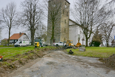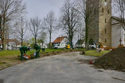 Nachdem im Jahre 2023 das Pfarrhaus in Mellrich abgerissen wurde, haben nun die Arbeiten an der Neugestaltung der freigewordenen Fläche begonnen. Der gesamte Boden, in dem sich auch noch Wurzelreste und viel Unkraut befinden, wird entfernt, die Fläche mit neuem Boden angefüllt und einige Absenkungen verfüllt. Drei neue Solitäreiben sollen den Platz optisch aufwerten. Der Weg zur Pfarrkirche wird in einem Teilbereich an den gepflasterten Kirchplatzweg angeglichen. Das Missionskreuz aus dem Jahre 1855 erhält einen neuen Platz und zwar am Kirchturm rechts auf der Rasenfläche. Die Maßnahme soll bis zum Schützenfest beendet sein; die Kosten dafür belaufen sich auf rund 22.900 Euro. Kirchenbesucher werden gebeten, den Treppenaufgang am Ehrenmal zu nutzen.