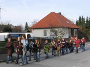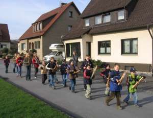 Nach altem Brauch zogen wieder Mellricher Mädchen und Jungen - diesmal 26 an der Zahl - durchs Dorf, um die während der Kartage "nach Rom geflogenen" Glocken durch hölzerne Instrumente zu ersetzen und Langschläfer zu wecken. Diesmal spielte das Wetter mit; zaghaft blinzelte die Frühlingssonne; laut Wetterprognose war's das dann aber auch schon für Ostern.