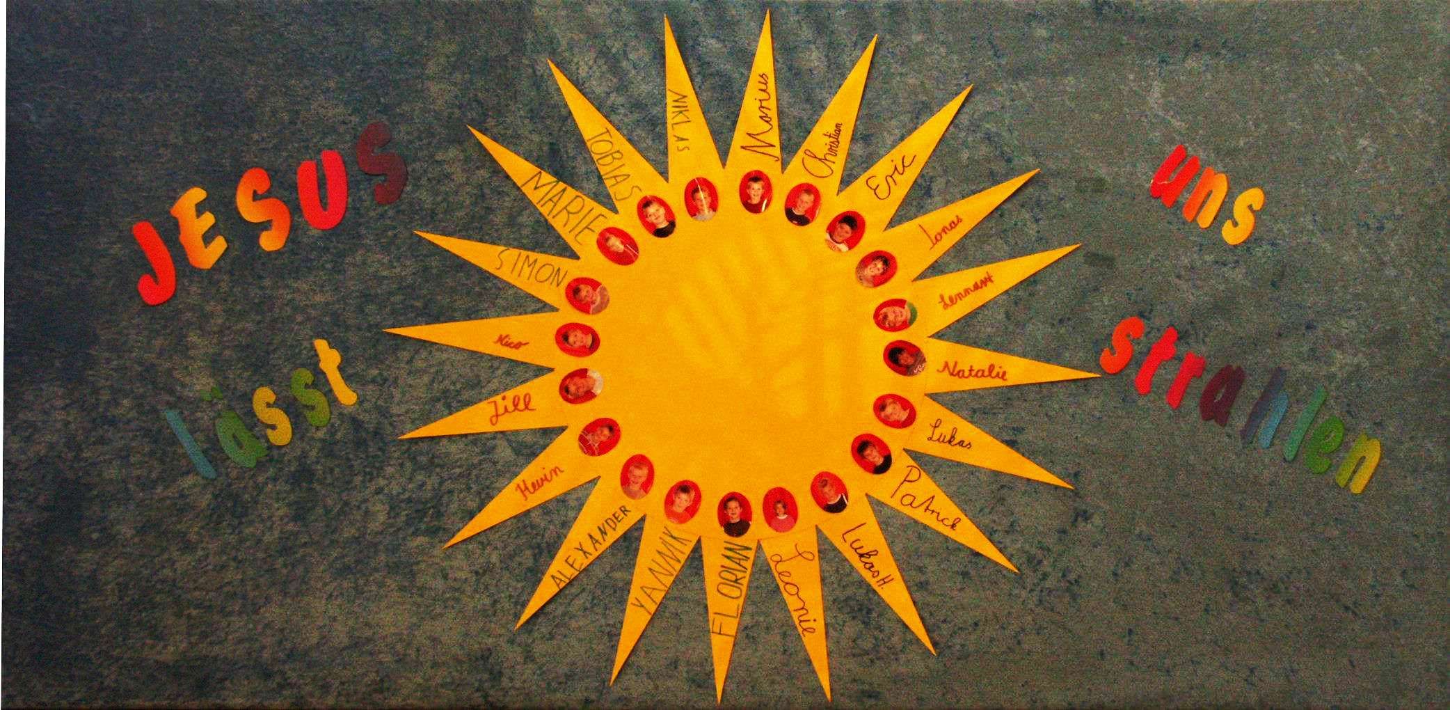In dieser Montage haben die Kommunionkinder des Kirchspiels Mellrich sich selbst dargestellt unter dem Motto "Jesus lässt uns strahlen". Wenn Sie auf das Bild klicken, können Sie