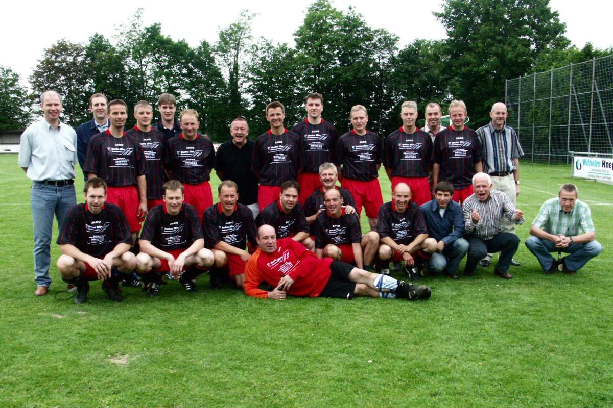 Ein schöneres Geburtstagsgeschenk hätte sich die AH-Mannschaft der DJK Mellrich zu ihrem 40-jährigen Bestehen am vergangenen Wochenende nicht machen können: Im Viertelfinalspiel um den AH-Kreispokal konnte die DJK-AH-Elf den starken Gegener TuS Lipperode nach einem spannenden Spiel im Elfmeterschießen mit 5:3 besiegen. Dieter Pilgrim hatte die Mellricher in der ersten Halbzeit mit 2:0 in Führung gebracht. Kurz vor Ende der ersten Halbzeit gelang den spielerisch überlegenen Lipperodern der Anschlusstreffer. 2:2 stand es nach Ende der regulären Spielzeit. Auch nach der Verlängerung stand es 2:2. Erst im Elfmeterschießen fiel die Entscheidung mit 5:3 für Mellrich. Torwart Thomas Schrick war der Held des Tages, der einen Elfmeter hielt und von seinen Spielkameraden euphorisch gefeiert wurde. Schützenkönigin Mechthild Holle und der flotte Fan-Kreis „Die Jungen Frauen der Alten Herren der DJK Mellrich“ freuten sich besonders über den glücklichen Sieg der AH-Mannschaft. Mechthild Holle: „Männer, wir sind stolz auf euch!“ Zuvor hatten sich die A-Junioren der DJK-Mellrich und Warstein 1:3 getrennt. Trotz klarer Überlegenheit der Gäste aus Warstein konnten die Mellricher gut mithalten und die Niederlage in Grenzen halten. - Zur Jubiläumsfeier begrüßte AH-Geschäftsführer Joachim Schürmann u.a. den Vorsitzenden der DJK-Spielvereinigung Mellrich, Heinz Mendelin, Ortsvorsteher Franz Grae-Budde sowie die zahlreich erschienenen Festgäste. In einer tollen Bilderschau präsentierte Joachim Schürmann in einem Rückblick das Werden und Sein der Alt-Herren-Mannschaft in den vergangenen 40 Jahren, die auch in einer viel beachteten, recht umfangreichen Festzeitschrift auf 104 Seiten dokumentiert worden war. Mit einer Ehrennadel zeichnete Joachim Schürmann die Gründungsmitglieder Franz Korte, Vinzenz Bracht, Heinz Beck, Heinz Merschulte, Walter Redder, Horst Schwietzer und Franz Redder aus. Joachim Schürmann erwähnte besonders die bereits verstorbenen Gründungsmitglieder Werner Stratmann und Walter Mendelin. Grüße und Glückwünsche überbrachten Ortsvorsteher Franz Grae-Budde, Andreas Knorr von der Sparkasse Anröchte, Wilhelm Gilleßen von den Alten Herren des TuS Anröchte und die frühere Vereinswirtin Klothilde Wibberg, die ausrief: „Herzlichen Glückwunsch und vielen Dank für 35 Jahre Treue!“
