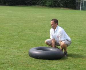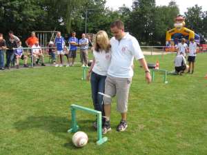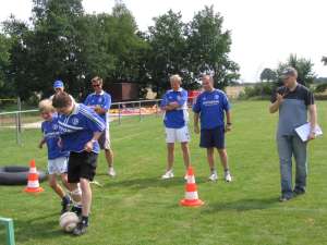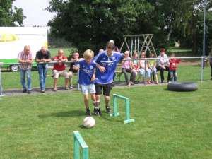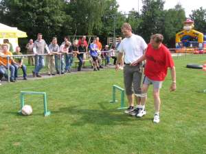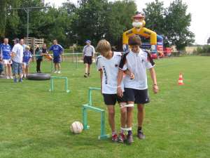 Beim Ballführen zu zweit mussten die Teilnehmer einen Ball durch aufgestellte Tore rollen. Echte