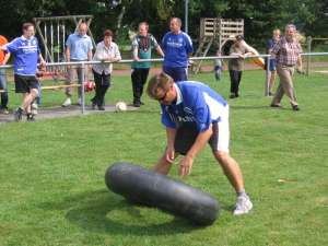 Wasser gefüllten Schläuche hatten ein ganz schönes Gewicht. Auch das Sacklaufen als Paar kam bei den