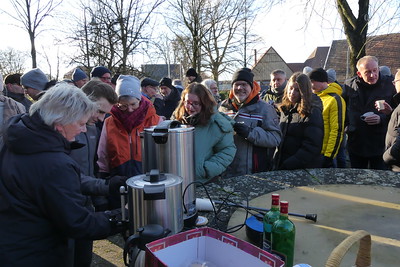 Der Dorfplatz konnte die vielen Musikfreunde kaum fassen, die sich wie schon seit vielen Jahren auf dem Dorfplatz trafen, um den weihnachtlichen Klängen der Bläsergruppe vom Musikverein Anröchte zu lauschen und sich dabei mit Freunden und Bekannten auszutauschen und ihnen frohe Weihnachten zu wünschen. Zwar gab es keinen Schnee, wohl aber Sonnenschein und winterliche Temperaturen um den Gefrierpunkt. Den eisigen Nordostwind konnte man mit Glühwein bekämpfen, den der Heimatverein wieder zur Verfügung stellte. Einigen frostresistenten Zeitgenossen gelang es sogar, den Frost mit kühlem Bier zu vertreiben.