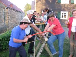 Für das leibliche Wohl war bestens gesorgt. Auf großes Interesse stieß ein Sägewettbewerb, bei dem es darum ging, ein Stück Holz abzusägen, das möglichst genau 200 Gramm wog. Diesen Wettbewerb gewann mit 198 Gramm Alfred Diergarten, der dafür