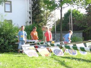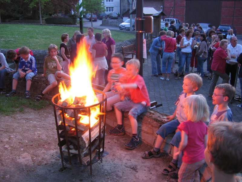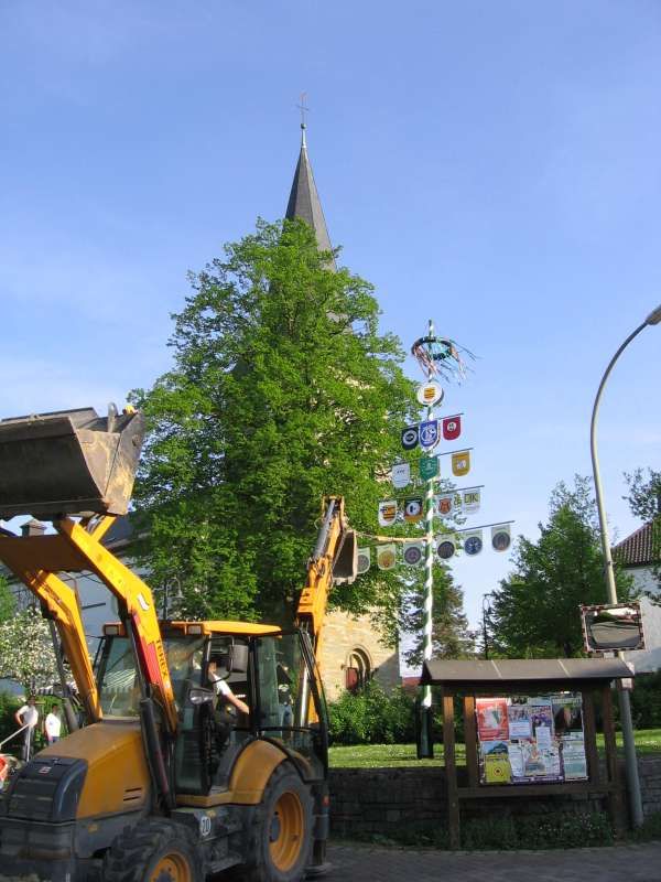 Diesmal hatte der Heimatverein wirklich Glück mit dem Wetter: Bei strahlendem Sonnenschein und hochsommerlichen Temperaturen wurde der Maibaum aufgestellt. Zahlreiche Schaulustige, darunter viele Kinder, ließen sich das Spektakel nicht entgehen.
