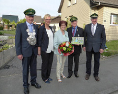 Schützenandacht gedacht wurde. Der neue Ortsvorsteher wurde, wie Berthold Marx launig bemerkte, nicht auf einem großen Hof, sondern in einer Sackgasse abgeholt. Nach dem Grünen König Ludwig Marx wurde das 40-jährige Jubelkönigspaar Heinz-Josef und Brigitte Körtling geehrt und abgeholt. Der Große Zapfenstreich auf der Vogelwiese