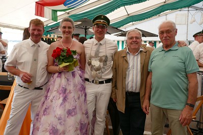 Grüße überbrachte die Soldatenkameradschaft des Kirchspiels Mellrich dem Königspaar Thomas und Kristina Grüne. Seit Fronleichnam 2024 gehört Thomas Grüne dem Verein an. Ihm wurde daher auch die Vereinsnadel der Soldatenkameradschaft vom Kassierer Helmut Hoffmeier überreicht. Uelde erwies sich wieder als angenehmer Gastgeber. DANKE!