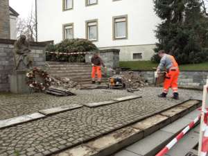 Derzeit gleicht ganz Mellrich einer Baustelle. Im Spätherbst vergangenen Jahres begannen die Arbeiten für den Anschluss Mellrichs an das Gasleitungsnetz. Bürgersteige sind teilweise nicht begehbar und Straßen durch die verlegten Gasrohre schlecht befahrbar. Nun haben auch noch am Ehrenmal dringend notwendig gewordene Instandsetzungsarbeiten begonnen. Die Stufen haben sich gelöst und der Unterbau bedarf einer Erneuerung. Immer wieder hatten sich in den vergangenen Jahren einige Stellstufen durch Witterungseinflüsse gelockert. Jetzt entschloss sich die Gemeinde Anröchte, die für die Unterhaltung der Gedächtnisstätte zuständig ist, zu einer kompletten Sanierung der Stufenanlagen. Ferner sind einige Steine an den Mauern auf dem Dorfplatz lose. Auch diese werden instandgesetzt. Die Arbeiten sollen noch rechtzeitig vor dem Mellrich-Waltringhauser Schützenfest in drei Wochen beendet sein.