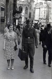 Auf dem Wege zum Bahnhof in Wuppertal-Elberfeld mit Cousine Gertrud am 3. August 1940