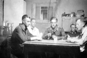 Ein zünftiger Skat vertreibt die Langeweile (Mitte).