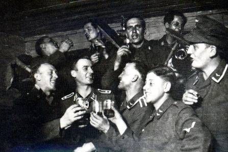 Trotz schlechter Lage Stimmung Silvester 1942 in Russland (links)