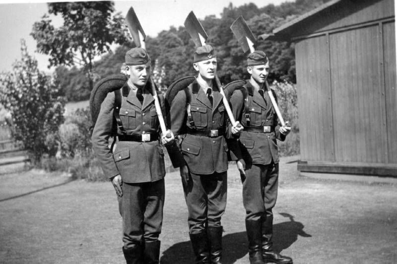 Reichsarbeitsdienst in Dillingen Saar am 8. August 1940 (links)