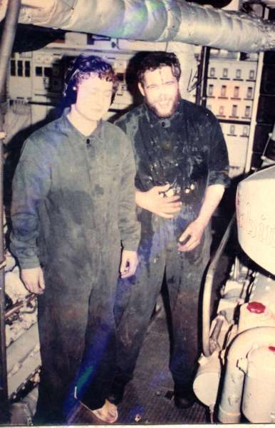 Josef Haese und Kamerad Thomas im Maschinenraum