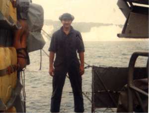 Smutje Detlef Wojahn geht zu seiner Arbeitsstelle.