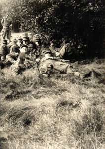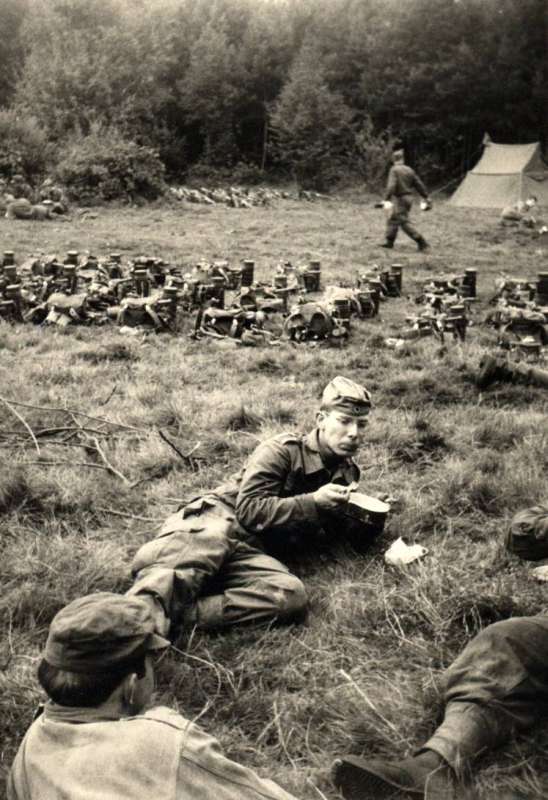 Essen fassen im Gelände Wentorfer Lohe August 1967 R.R. unten links mit dem Rücken.