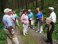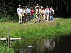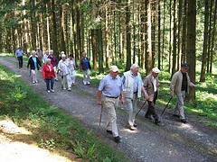 16 Wanderfreunde und -innen machten sich von einem Parkplatz nahe Nuttlar auf zum Waldgasthaus Föckinghausen. Nach der Hitze der letzen Woche hatten sich angenehme Temperaturen eingestellt; allerdings waren Schauer nicht ganz ausgeschlossen, blieben aber aus; nachher ist man eben immer schlauer. Ein schöner Waldweg mit mäßiger Steigung führt zu dem Waldgasthaus. Zwischendurch tun sich Fernblicke über den Arnsberger Wald auf, z. B. nach Eversberg.