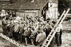 Vor 50 Jahren, am 13. Oktober 1961, wurde der Grundstein für den Neubau der Volksschule in Mellrich gelegt. In der Urkunde, die dem Grundstein beigefügt wurde, heißt es u.a.: "Der Bau bezweckt die Schaffung von drei neuen Klassenräumen mit Gruppenräumen, einem Mehrzweckraum für Mädchen und einer Lehrküche im Kellergeschoß. Dazu kommt ein Lehrerzimmer und ein Lehrmittelzimmer. Der Neubau wird so gestaltet, dass bei Bedarf in späteren Jahren nach Norden zwei weitere Klassenräume angebaut werden können. In einem Verbindungstrakt zum alten, 1911 erstellten Schulgebäude (sogenannte Knabenschule), werden die notwendigen Toilettenräume und ein Fahrradabstellraum geschaffen. Der bisherige Klassenraum im alten Schulgebäude (Knabenschule) wird zu einem Mehrzweckraum für Knaben umgestaltet." Träger des Schulneubaus, wie auch Eigentümer des alten Schulgebäudes, war der Schulverband Mellrich, bestehend aus den beiden Gemeinden Mellrich und Waltringhausen. Zu dieser Zeit waren Gerhard Priesnitz und Elisabeth Pehle an der Mellricher Schule tätig. Mit der Fertigstellung der Schule wurde eine dritte Lehrkraft eingestellt. Die Kosten dieses Neu- und Umbaus waren mit rd. 462.000,-- DM veranschlagt. Die Deckung war wie folgt vorgesehen: