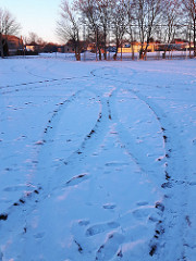 Leider hat in der Nacht von Freitag auf Samstag ein "unbekannter Täter" den Sportplatz als Drift-Möglichkeit genutzt...