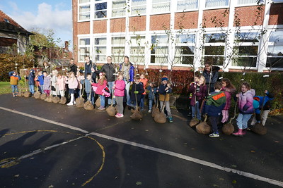 Schließlich freuten sich Kinder wie Eltern über die Obstbäume, ausschließlich alte westfälische Obstsorten, neu dabei der Obstbaum "Mirabelle von Nancy", erstmals im Jahre 1490 erwähnt.