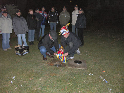 Mit der Beisetzung des Eumels endete für den Mellricher Carnevals-Club am Veilchendienstag die närrische Session 2004/2005. Zweiter Vorsitzender Frank Müller und Ortsvorsteher Franz Grae dankten allen, die zum guten Gelingen der Session beigetragen hatten. Gute Laune herrschte auf dem Prunkwagen, mit dem die MCC´ler zuvor durch Waltringhausen und Mellrich gefahren waren, um noch einmal karnevalistische Stimmung zu verbreiten.
