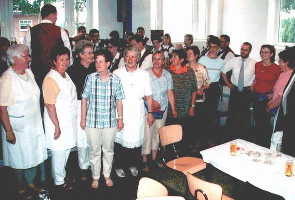 Das Publikum bedankt sich bei der Thekenmannschaft für flotte und gute Bewirtung. Reihum stellt jedes Jahr eine andere Kirchen- bzw. Kapellengemeinde des Kirchspiels die Thekenmannschaft