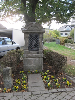 Das wohl im frühen 18. Jh. geschaffene religiöse Monument enthielt in seiner einst vergitterten Nische eine nach familiärer Überlieferung 1831 angeschaffte Holzskulptur der hl. Agatha, die anlässlich einer damaligen Geburt dort aufgestellt wurde. Diese wertvolle Heiligenfigur wurde Anfang der 1980er Jahre entwendet.