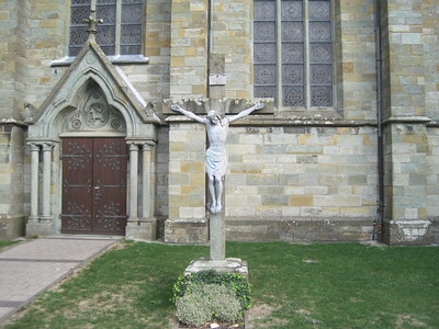 zu Beginn der 1980er Jahre abgebaut und 1984 an der Westseite des Kirchenschiffes wieder errichtet. Der Anlass seiner ursprünglichen Errichtung war die örtliche Durchführung einer sogen. Volksmission, die vom 33. Juni bis 1. Juli 1867 in der Pfarrgemeinde von Patres des Rietberger Franziskanerklosters abgehalten wurde.