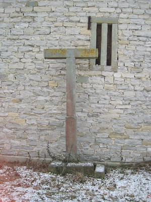 Sie stehen vor einem durch Schlichtheit bestechenden Kreuz, dessen Entstehungsjahr nicht bekannt ist.