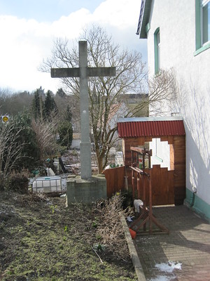 Durchfahrenden auffällt und an den Tod unseres Herrn erinnert. Man kann zu dem Kreuz hin gehen,