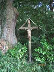 Dieses Holzkreuz mit Corpus wurde anlässlich der Priesterweihe des Diakons Michael von Fürstenberg im Jahre 1981 errichtet.