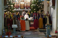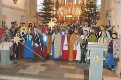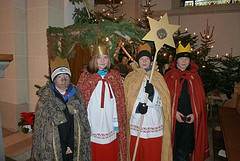 33 Könige aus dem Kirchspiel Mellrich hatten sich am Dreikönigstag in der Pfarrkirche St. Alexander zu Mellrich versammelt. Im Rahmen eines Wortgottesdienstes begrüßte Gemeindereferentin Andrea Lohmann eine große Zahl von Jungen und Mädchen, die zum Fest der Erscheinung des Herrn die frohe Botschaft von der Geburt Jesu allen Familien im Kirchspiel Mellrich überbrachten und dabei Spenden sammelten, die für zwei Projekte bestimmt sind und zwar für Sr. Anna Diekmann zur Unterstützung der Caritas in Satu Mare, Rumänien und Sr. Edeltraud Strugholtz für das Projekt "Petit Flamme" im Congo.