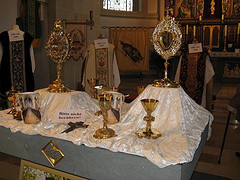 Sichtlich zufrieden war der Pfarrgemeinderat mit dem Verlauf des "besonderen Sonntag in Sankt Alexander zu Mellrich". An sechs Ständen hatten die Dörfer Altenmellrich, Klieve, Mellrich, Robringhausen, Uelde und Waltringhausen wertvolle Gewänder, liturgische Geräte, Statuen, Fotos, Infomaterial sowie die Fahnen der Schützenvereine präsentiert. Die Besucher konnten z.B. alte, kunstvoll bestickte Gewänder bestaunen, auch "Bassgeigen" genannt, die von den Geistlichen in vorkonziliarer Zeit getragen wurden und heute eher selten zu sehen sind. Wertvolle Monstranzen und Kelche konnten aus nächster Nähe betrachtet werden, u.a. die Kelche von Bischof Franz Drepper und des im Jahre 1986 verstorbenen Pastors Josef Pletziger. Waltringhausen präsentierte den Entwurf eines neuen Heiligenhäuschens von Steinbildhauermeister Hans-Dieter Schütte aus Klieve. Das Heiligenhäuschen, das die Hl. Anna, die Mutter Gottes Maria mit dem Jesuskind zeigt, soll in naher Zukunft auf dem Waltringhauser Dorfplatz stehen. Ursula Graskemper aus Uelde hatte ein Ratespiel vorbereitet, an dem sich besonders die Kinder mit Eifer beteiligten. Bei wärmenden Getränken und Gebäck gab es im Turm der Pfarrkirche viele Gespräche und lobende Worte für die Organisatoren dieses Tages. Bevor Organist Georg Weißnicht mehrere altvertraute gesungene Kirchenlieder an der Orgel begleitete, freute sich Pfarrgemeinderatsvorsitzender Theo Hötte über den guten Besuch aus allen Gemeinden des Pastoralverbundes und dankte allen Helferinnen und Helfern, die zum Gelingen des "besonderen Tages in Sankt Alexander" beigetragen hatten. Auch Pfarrer Waldemar Kolotzek und Vikar Guido Ricke waren mit dem Verlauf und dem Besuch sehr zufrieden.