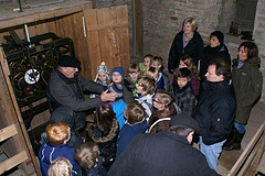 Ja, das war schon spannend, als die diesjährigen Kommunionkinder und einige Eltern den Turm der Mellricher Pfarrkirche besichtigten. Karl Wasmuth erklärte zunächst die im Jahre 1919 aufgestellte Turmuhr. Früher mussten die zentnerschweren Gewichte per Hand aufgezogen werden. Heute sorgen dafür zwei elektrische Motoren. Dann ging es weiter in die Glockenstube. Alle warteten sichtlich angespannt auf 11 Uhr. Dann schlug es 11 Uhr, und viele Kinder hielten sich die Ohren zu. Karl Wasmuth wies auf die lange Geschichte der aus den Jahren 1642, 1668 und 1789 stammenden Mellricher Glocken hin, die während der Kriege Gott sei Dank nicht eingeschmolzen worden waren. Sichtlich interessiert waren die Jungen und Mädchen über die Geschichte des Gotteshauses. Karl Wasmuth und Vikar Guido Ricke hatten zahlreiche Fragen zu beantworten.