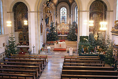 Die Pfarrkirche Sankt Alexander zu Mellrich präsentiert sich in weihnachtlichem Schmuck.