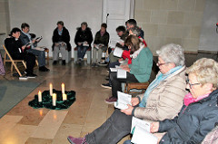 "Hier im Altarraum nehmen wir uns eine kleine Auszeit vom hektischen Treiben und lassen uns ein auf Stille, meditative Texte und singen Adventslieder!" In diesem Jahr haben die Spätschichten das Thema "Das Kleine ganz groß"! Ingrid Henneböhl begrüßte die Erschienenen und entzündete beim Lied "Wir sagen euch an den lieben Advent.." die erste Adventskerze. In besinnlichen Texten stand das "Warten auf Gottes Sohn" im Mittelpunkt der Betrachtungen. Aber auch die kleinen Gesten, die im täglichen Leben große Wirkung zeigen, wie z.B. ein freundliches Gesicht bei der Arbeit oder ein Gespräch mit dem, der dir wenig sympathisch ist. Das Orga-Team des Pfarrgemeinderates mit Marianne Diergarten, Elfriede Kleine, Ingrid Henneböhl und Angelika Kleeschulte freute sich über die Dankesworte von Ursula Meinschäfer für die eindrucksvolle erste Spätschicht, der am Montag, 17. Dezember die zweite Spätschicht um 20 Uhr folgen wird.