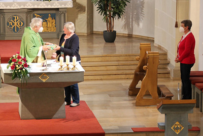 Am Ende der Messfeier überraschten Pfarrgemeinderatsvorsitzende Marianne Diergarten und Ingrid Henneböhl Pfarrer Dr. Wieczorek mit einem Präsent und Organist Georg Weißnicht intonierte ein Geburtstagsständchen, denn der Geistliche feierte am Festtag des Hl. Alexander seinen Geburtstag und vor der Kirche sangen einige Gottesdienstbesucher dem sichtlich erfreuten Geistlichen ein Geburtstagslied.
