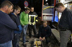 Ersten Kontakt mit der Ausrüstung Atemschutz hatte Philipp Sander, als ihm Jochen Grae-Budde in die Jacke eines Atemschutzgeräteträgers half. Interessant auch die Besichtigung des LF10 mit seinen vielfältigen Gerätschaften. Feuerwehrmann Lars Vätter erläuterte recht anschaulich die Technik für die Atemschutzgeräteträger. 19 Atemschutzträger gehören derzeit der Löschgruppe Mellrich an.