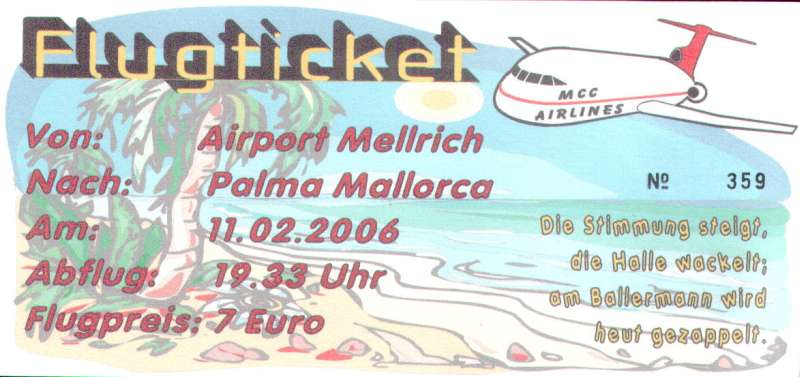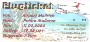 Am Eingang bekommt jeder Besucher ein Flugticket vom Airport Mellrich (gleich hinter der Schützenhalle) nach Mallorca.