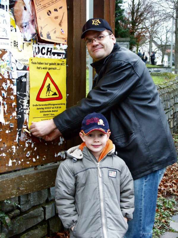 Alle Hände voll zu tun haben die Aktiven des Mellricher Carnevals-Club, denn bereits am 3. und 4. Februar erreicht Mellrich das närrische Fieber. Unter dem Motto "Alle haben laut gelacht; der MCC hat´s wahr gemacht….!" feiern die großen und kleinen Närrinnen und Narren in der Schützenhalle den Höhepunkt der "fünften" Jahreszeit. Präsident Michael Sehrbrock und Sohn Hannes hängten nun Plakate aus, die auf Karnevalsveranstaltungen hinweisen. Das "Prunkwagenteam" ist derzeit dabei, den Motivwagen für den Rosenmontagsumzug am 26. Februar in Belecke herzurichten. Dabei werden die Helferinnen und Helfer von Günter Krick mit guten