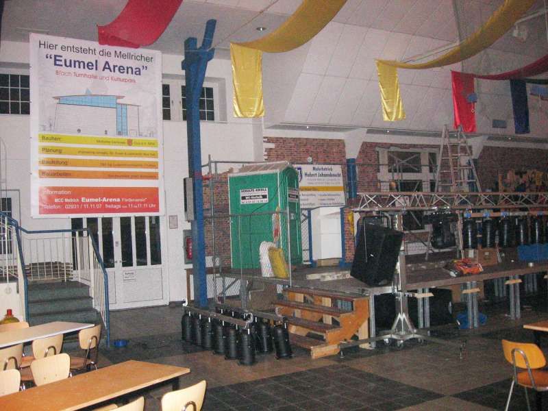 In der Schützenhalle herrscht hektisches Treiben. Die Eumel-Achtfach-Mehrzweck-Arena steht kurz vor der Einweihung. Alles, was Rang und Namen hat in Politik, Kirche und Showgeschäft, ist hocherfreut, an der großen Feier